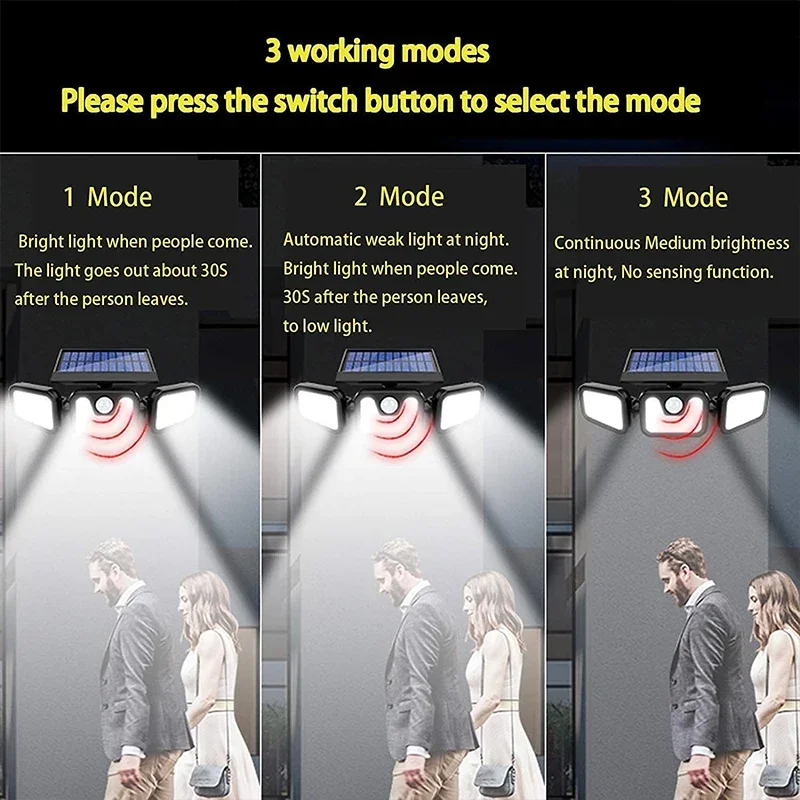 This solar motion sensor light is perfect for outdoor security and lighting. Equipped with a human induction sensor for automatic activation. Adjustable head allows you to direct light where needed. Solar-powered design eliminates the need for wiring or electricity. IP65 waterproof rating ensures durability in all weather conditions. Ideal for gardens, pathways, driveways, and entrances. Easy to install on walls or outdoor surfaces. Provides bright, reliable illumination for safety and convenience. Energy-efficient LED reduces power consumption while providing strong light. Perfect for homeowners, campers, or anyone needing outdoor lighting. Low-maintenance design makes it a practical long-term solution. This solar motion sensor light is a versatile and eco-friendly choice for outdoor illumination.
